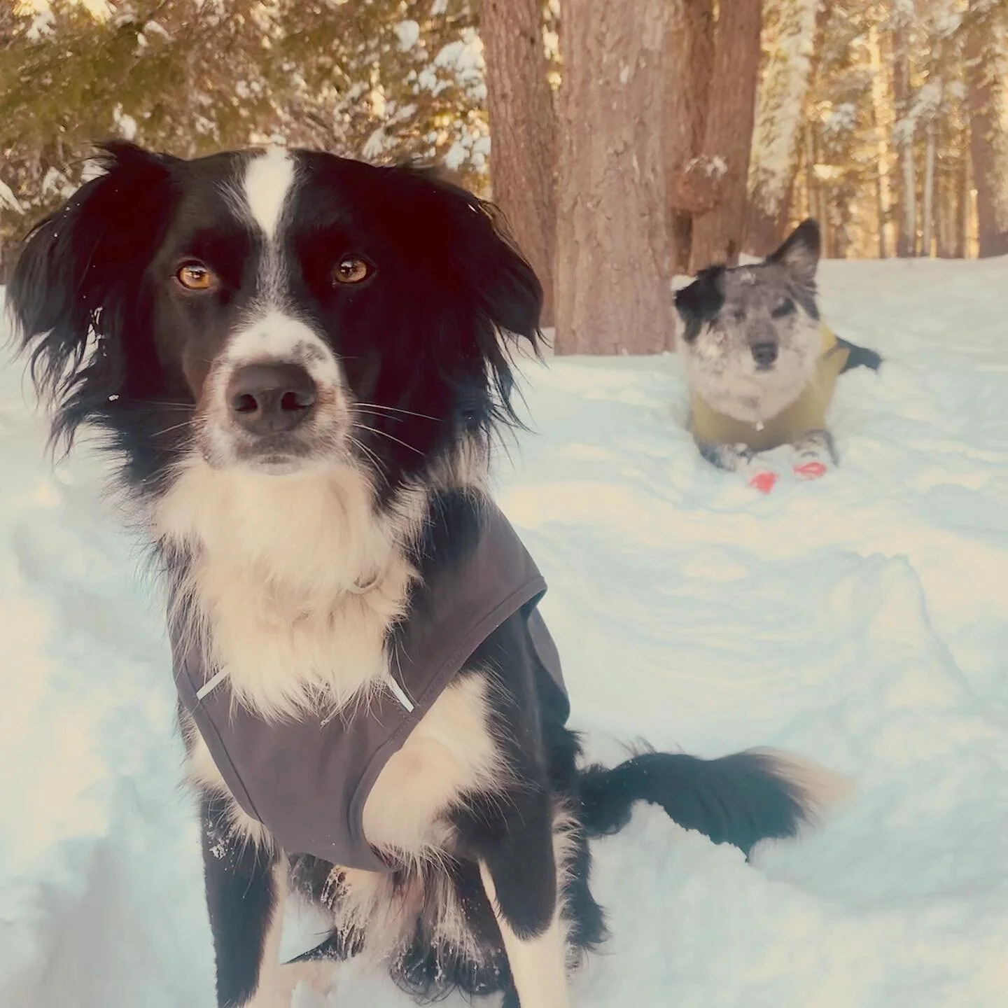 Finn: is my 3 year old GSP/Lab mix. He is a rescue from the Humane Society of Central Oregon & has been with me since he was 8 weeks old. He is a lovable goofball with a passion for swimming, hiking, catching falling snow, & jumping head first into life's adventures. He is looking forward to exploring with your pups.